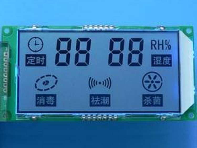凈化器TN段碼液晶顯示模組:TN顯示屏+FR4PCB+高亮白色側(cè)背光+HT1621