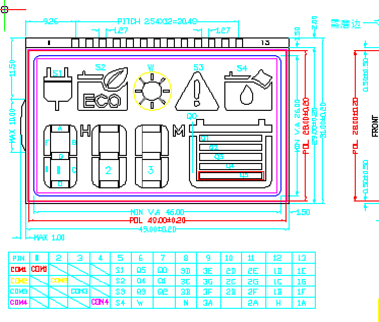 8, 驅(qū)動方式:1/4DUTY 1/3BAIS (按客戶所用IC和客戶要求確定)